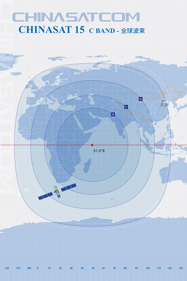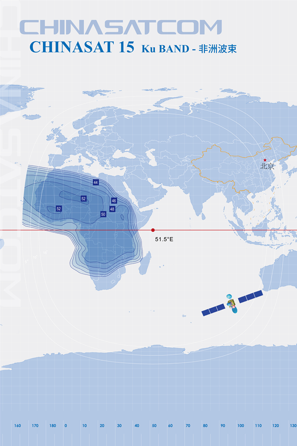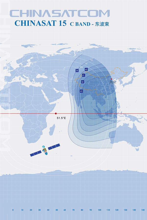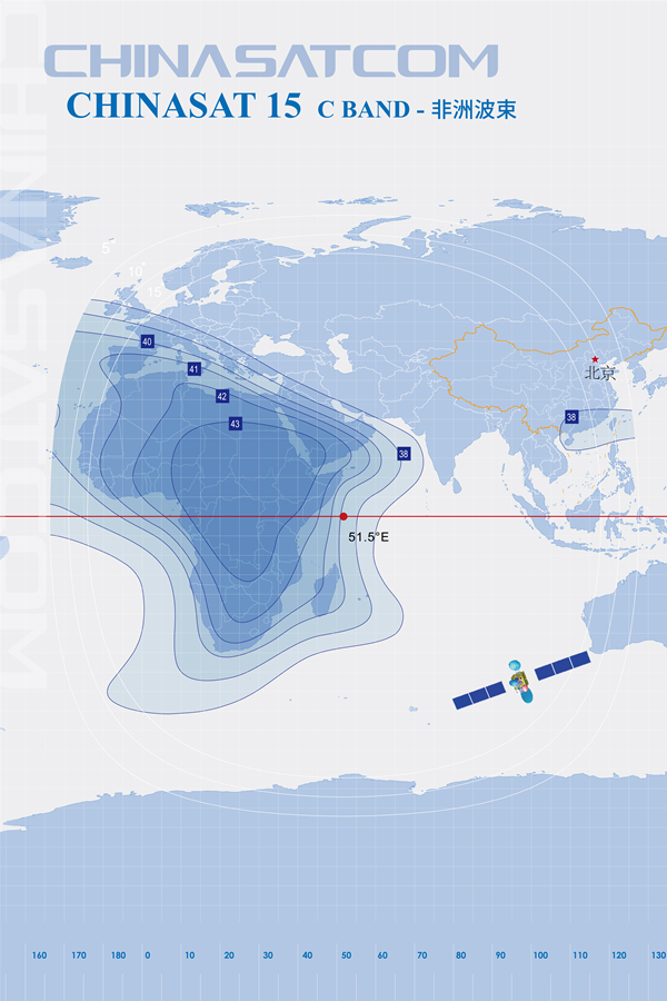 中星15號/白俄羅斯1號衛星是一顆中國和白俄羅斯的合作衛星,采用東方紅4號平臺,設計壽命15年,衛星將定點于東經51.5度,提供20個C頻段和18個Ku頻段轉發器。C頻段波束可以覆蓋非洲、歐洲、中東和亞洲,Ku頻段非洲波束覆蓋西非、中非和東非地區。中星15號衛星將通過高質量的衛星轉發器為上述地區提供廣播、通信、電信港和數據中心服務。