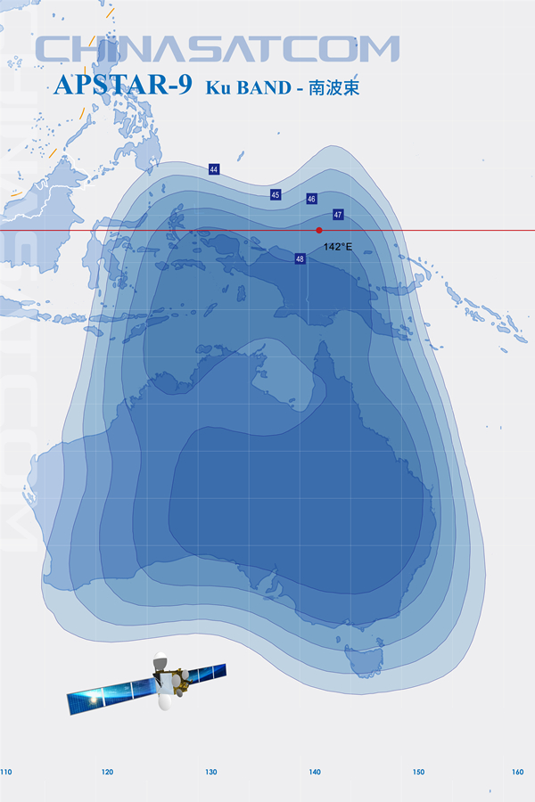 亞太衛星公司采購的亞太9號衛星,是基于中國航天科技制造的東方紅四號衛星平臺的衛星。亞太9號衛星搭載32個C波段轉發器和14個Ku波段轉發器,計劃發射到142E軌道位置以接替亞太9A衛星。