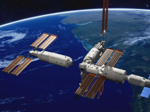 夢(mèng)天實(shí)驗(yàn)艙與空間站組合體交會(huì)對(duì)接示意動(dòng)畫
