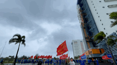 天空下著蒙蒙細雨,并不影響試驗隊員的熱情,風雨同“舟”,期待——長七飛天!天舟必達!夢圓九天!