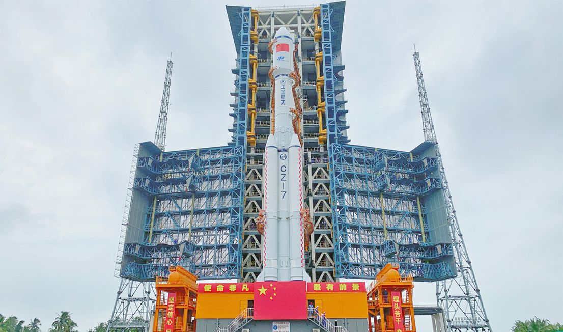 天舟五号飞船与长征七号遥六火箭组合体垂直转运至发射区