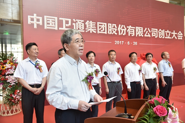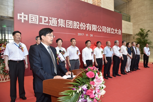 集團公司雷凡培董事長宣布中國衛通集團股份有限公司成立,并做了重要講話,他指出,整體改制為股份公司是衛通公司資產證券化進程中的重要環節,推進資產證券化既是落實黨中央、國務院關于深化國有企業改革的重要舉措,也是集團公司深化改革和衛通公司自身發展的內在需要,更是服務好國家創新驅動發展戰略、軍民深度融合發展戰略和“一帶一路”倡議的有力保障。要求衛通公司董事會及經營管理層要認真落實后續工作,明確任務、及早謀劃,扎實推進整體上市,促進衛通公司又好又快發展。