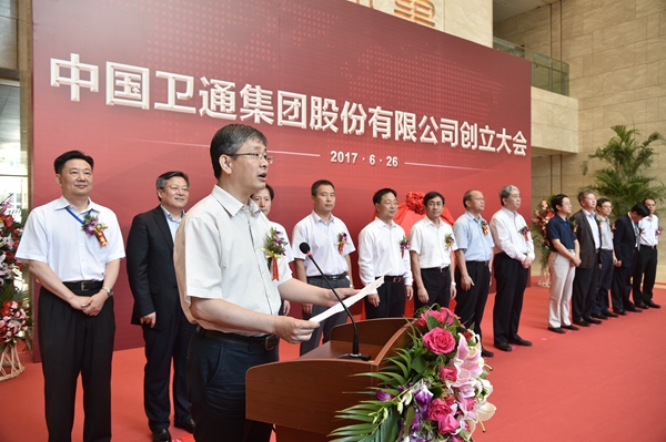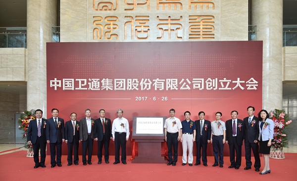 6月26日上午,中國衛通集團股份有限公司在中國衛星通信大廈舉行了創立大會。集團公司黨組書記、董事長雷凡培,黨組副書記、副總經理袁潔,及集團總部相關部門領導、股東單位、兄弟單位代表,公司董監事、中介機構有關領導和來賓出席了股份公司創立儀式。儀式由衛通公司副總經理趙棟主持。