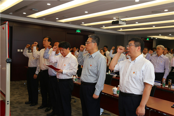 會議傳達了集團公司七一表彰大會精神,公司黨委委員、副總經理趙棟宣讀了公司黨委表彰決定,公司黨委書記、董事長李忠寶為獲獎集體和個人頒獎。公司今年新發展的3名黨員在“七一”之際面對黨旗進行宣誓,隨后,李忠寶領誓,會場全體黨員集體重溫入黨誓詞。