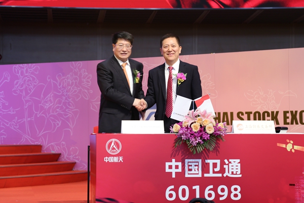 中國航天科技集團有限公司董事長、黨組書記吳燕生在上市發行儀式上致辭祝賀,他希望中國衛通發揮上市平臺和龍頭企業優勢,做好市場化的戰略資源整合,大力開展天地一體化綜合信息服務,構建共享共贏的衛星通信產業鏈和生態圈,進一步牽引帶動我國衛星制造和衛星應用產業的發展,讓航天科技更好地服務大眾美好生活。