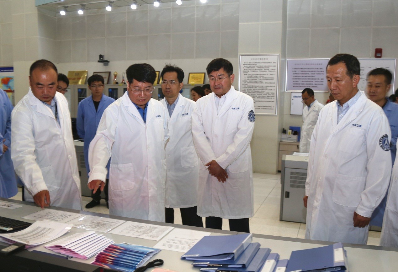 在北京地球站,張建恒一行聽取了衛通公司在安播工作系統籌劃、隊伍組織落實、應急預案準備、技術系統維護等方面的情況匯報,并現場檢查了衛星測控機房、業務運行機房、配電室等安播重點部位。隨后,張建恒一行赴航天飛控中心沙河站進行現場檢查、聽取了匯報。