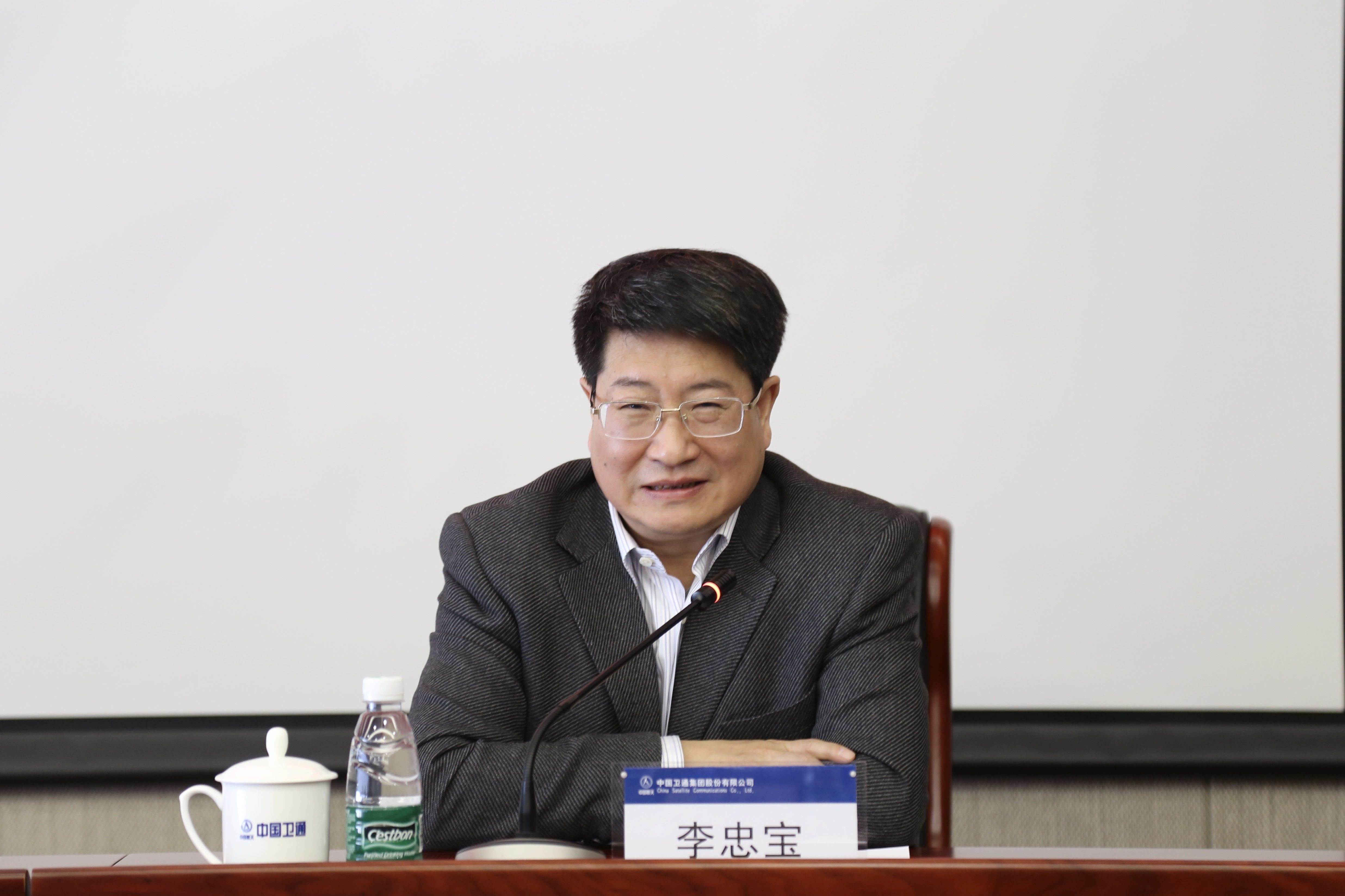 中國(guó)衛(wèi)通黨委書(shū)記、董事長(zhǎng)李忠寶主持報(bào)告會(huì)