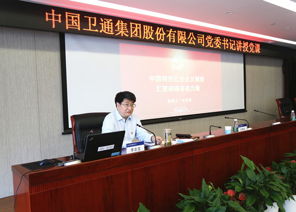 7月1日,在中國共產黨成立99周年之際,中國衛通黨委書記、董事長李忠寶以《中國特色社會主義制度匯聚磅礴奮進力量》為題講授專題黨課,激勵各級黨組織和廣大黨員進一步振奮精神、凝心聚力,深入推進公司轉型發展,堅決打贏疫情防控阻擊戰和轉型發展攻堅戰,更加自覺地肩負起黨和國家賦予的責任使命。