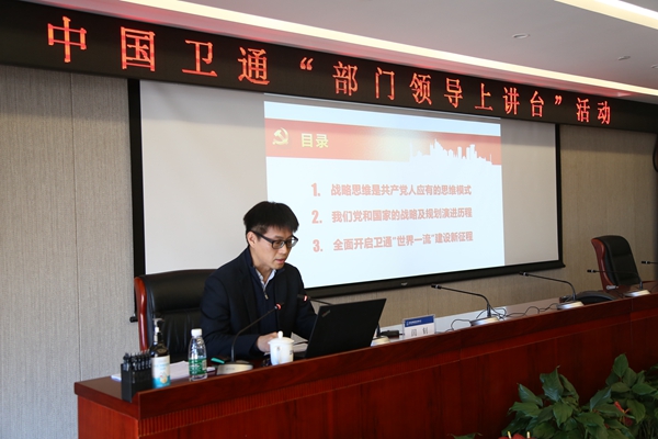為深入學(xué)習(xí)貫徹黨的十九屆五中全會(huì)精神,集思廣益謀劃好公司“十四五”規(guī)劃藍(lán)圖。11月8日上午,中國衛(wèi)通舉辦以“學(xué)習(xí)貫徹十九屆五中全會(huì)精神,全面開啟打造世界一流衛(wèi)星通信產(chǎn)業(yè)龍頭企業(yè)新征程”為主題的“部門領(lǐng)導(dǎo)上講臺(tái)”活動(dòng),公司董事長、黨委書記李忠寶,公司總經(jīng)理孫京以及其他領(lǐng)導(dǎo)班子成員、調(diào)研員、中層干部共計(jì)67人參加活動(dòng)。