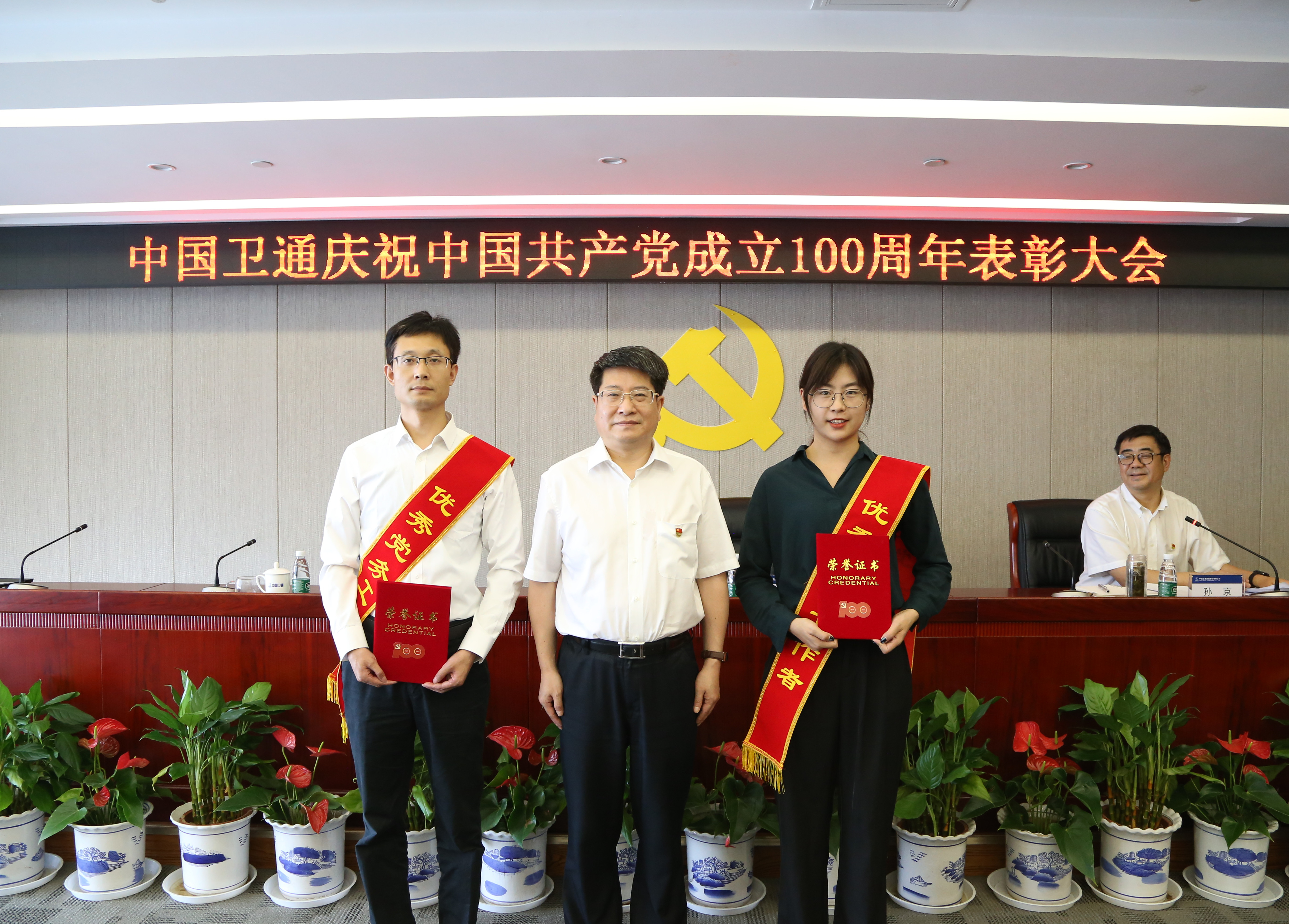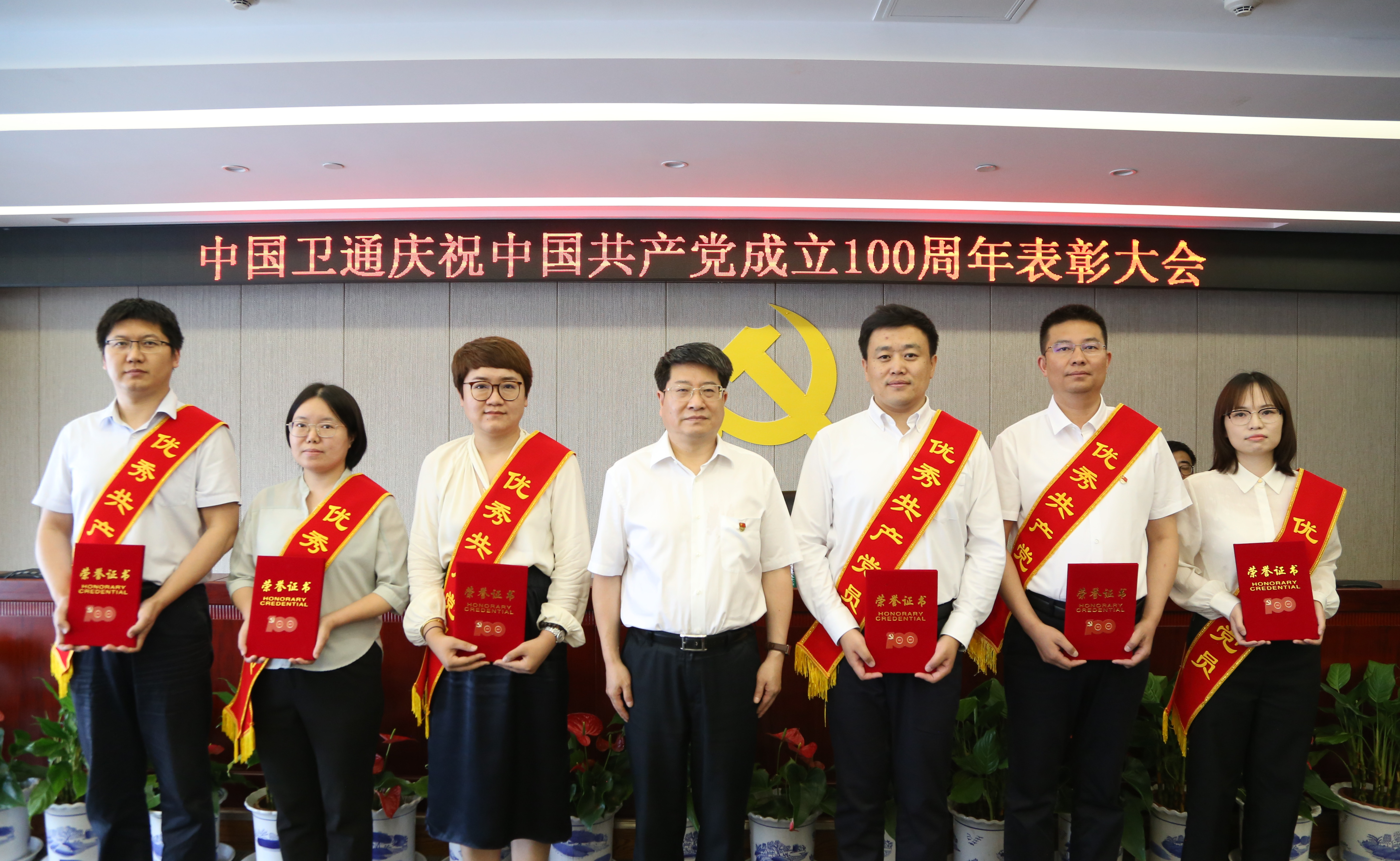 為隆重慶祝中國共產黨成立100周年,7月1日下午,中國衛通召開表彰大會暨黨委書記講黨課,傳達習近平總書記在“七一勛章”頒授儀式和慶祝中國共產黨成立100周年大會上的重要講話及集團公司表彰大會精神,表彰公司“紅旗黨支部”“優秀共產黨員”和“優秀黨務工作者”,組織新黨員入黨宣誓,進一步激勵動員中國衛通各級黨組織和廣大黨員,提高政治站位、胸懷“兩個大局”,堅定履行時代賦予的光榮使命,奮力推動“十四五”高質量發展。會上,中國衛通黨委書記、董事長李忠寶為獲獎集體和個人頒獎,并結合黨史學習教育,以《賡續紅色基因 汲取奮進力量——為建設世界一流衛星通信產業龍頭企業不懈奮斗》為題講授專題黨課。總經理孫京主持會議,并宣讀公司黨委表彰決定。紀委書記李月玲傳達中央和集團公司有關會議精神。